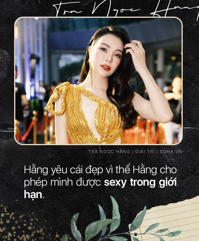 Người đẹp Trà Ngọc Hằng tâm sự rằng, Hằng yêu cái đẹp vì thế Hằng cho phép mình được sexy trong giới hạn, bởi cái gì đẹp thì cần gì phải giấu, miễn không thô tục và sexy theo kiểu nghệ thuật thì cũng nên mà. Vì phụ nữ ai cũng thích sexy chẳng qua không nhiều thì ít và sexy ở nơi nào thôi.