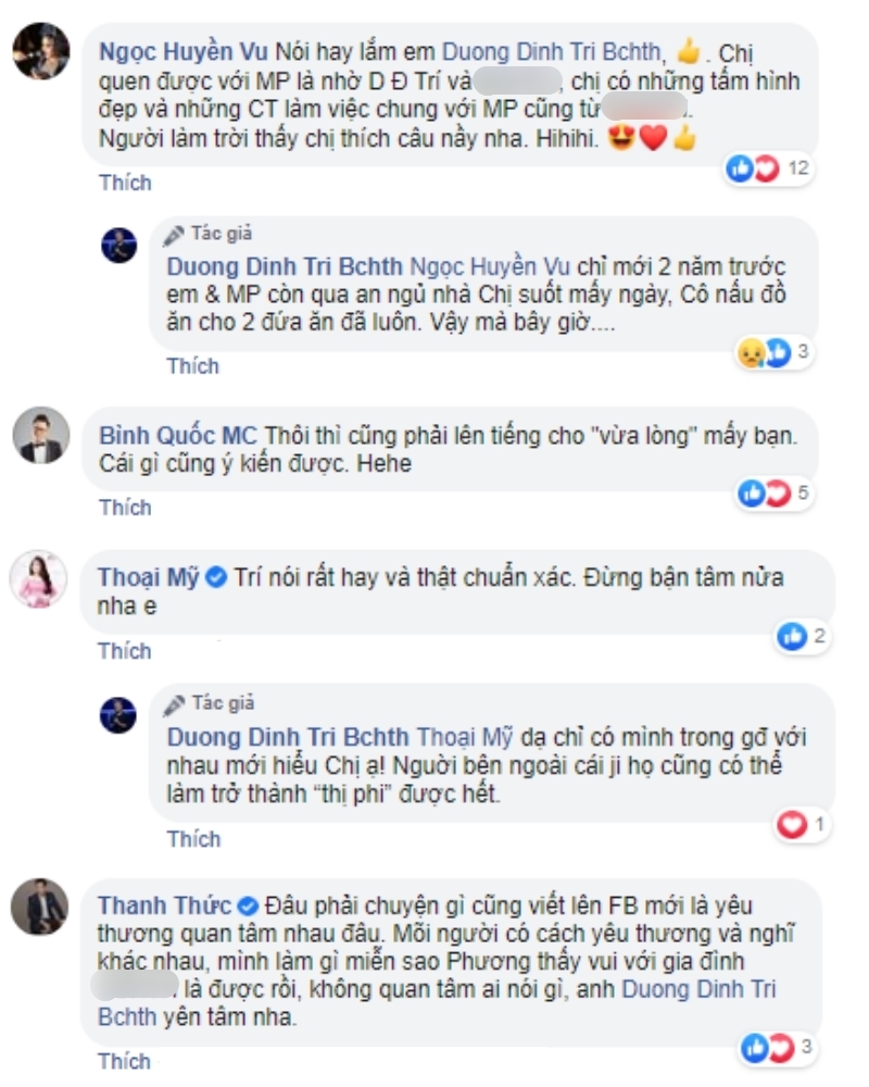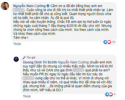 Ngay bên dưới bài chia sẻ trên, ca sĩ Nam Cường cũng bày tỏ sự đồng quan điểm: "Cảm ơn anh đã lên tiếng thay anh em chương trình. Cuộc sống là cho đi, đôi khi không nhất thiết phải nhận lại, làm không nhất thiết phải để cho ai cũng biết. Quan trọng người được chia sẻ họ biết, họ cảm nhận, ấy đã là quá đủ. Chúng ta chọn sống theo cách của mình, vui theo cách của mình, và khóc theo cách của mình."