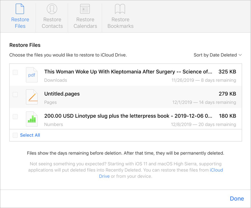 Khôi phục dữ liệu đã xóa thông qua iCloud Drive