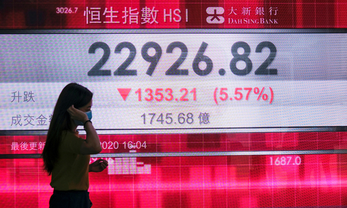 Các nhà đầu tư ngay lập tức thể hiện phản ứng đáng lo ngại trước kế hoạch của Bắc Kinh. HSI, chỉ số chứng khoán quan trọng nhất của Hong Kong, hôm 22/5 giảm hơn 5%, mức giảm trong ngày tồi tệ nhất kể từ tháng 7/2015. Đây dường như là dấu hiệu cho thấy luật an ninh có thể giáng đòn nặng nề lên nền kinh tế của đặc khu.