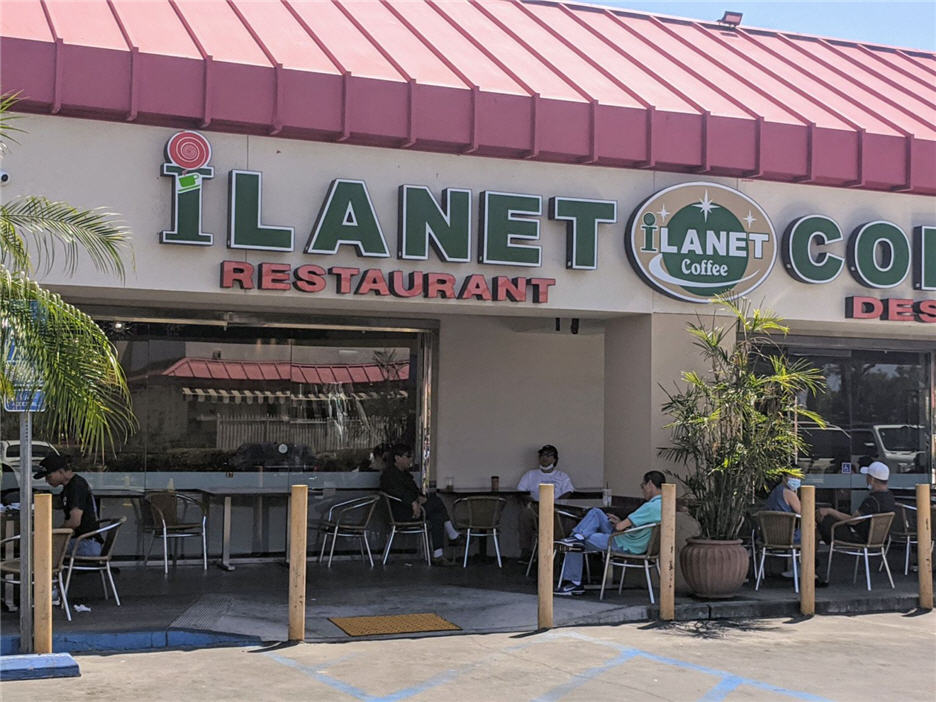 Một nhà hàng Việt Nam khác cũng mở cửa lại cho khách vào ăn là iLanet Coffee trong khu chợ Hòa Bình ở Garden Grove.