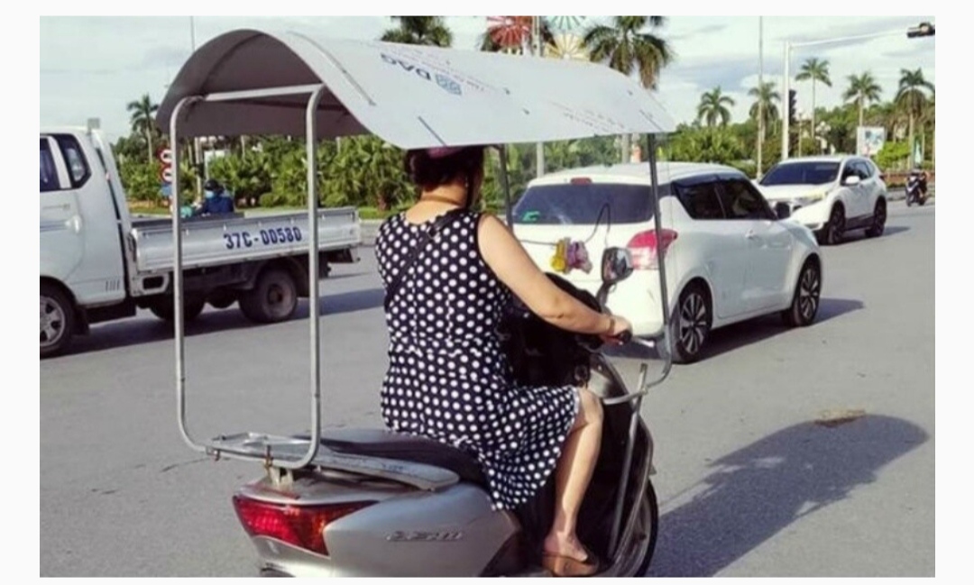 Gần đây, trên internet xuất hiện nhiều hình ảnh xe máy hai bánh được cải tạo, lắp thêm mái che cố định, di động hoặc cải tạo thành xe ba bánh lắp kính chắn gió, vách xung quanh để chống nắng.