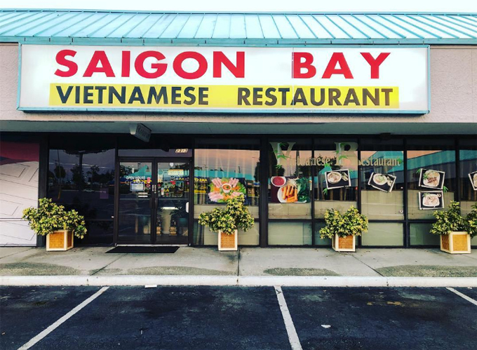 Đây là một nhà hàng nổi tiếng trong khu vực với nhiều món ăn đặc sản mang đậm hồn Việt như phở bò, gỏi cuốn, cơm thịt nướng... được người dân và sinh viên đại học Nam Florida gần đó yêu thích. Nhà hàng Saigon Bay đã tồn tại hàng chục năm nay, vừa được đổi chủ cách đây 4 năm. Nhà hàng chỉ có một tầng nhưng không gian khá thoải mái nhưng giờ chỉ còn là đống đổ nát do bị đám đông biểu tình thiêu rụi hoàn toàn.