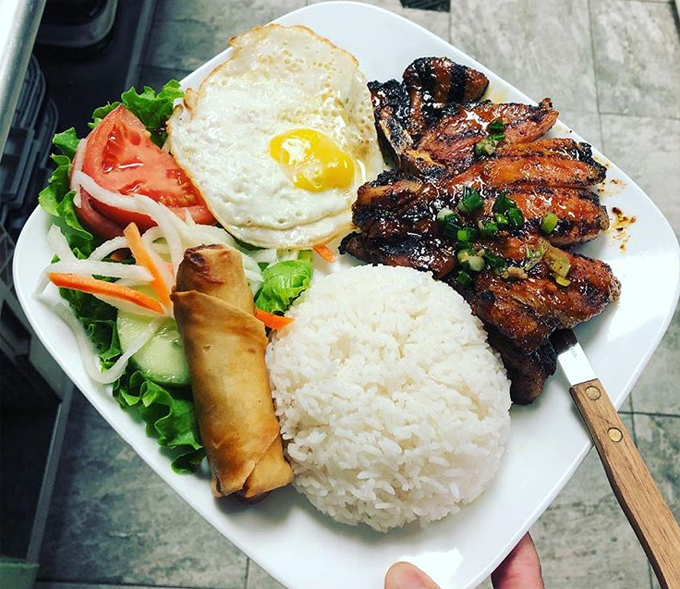 Ngoài các món cơm, bún, phở, nhà hàng còn có cả bánh xèo chuẩn vị, ăn kèm với đủ loại rau thơm không khác ở nhà như xà lách, bạc hà, dưa chuột muối chua, ăn kèm chút bì. Bánh canh, hủ tiếu, bún bò Huế có giá khoảng 9,5 USD còn bánh mì gà nướng, thịt nướng khoảng 4,5 USD.