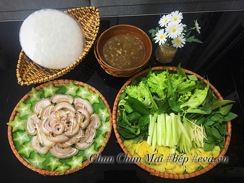 - Các loại rau rừng hoặc rau thơm cuốn cùng, bánh tráng