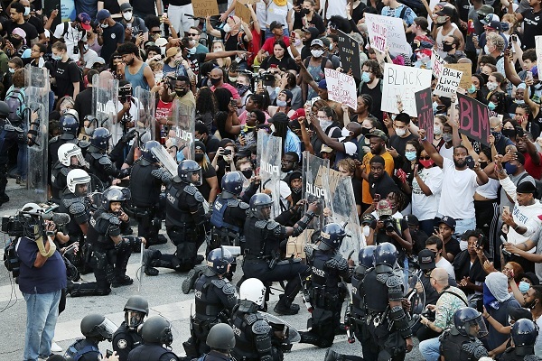 Lực lượng cảnh sát da màu đồng cảm với dòng người biểu tình. Ảnh: AP