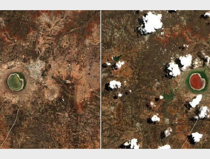 Mới đây, nước trong hồ Lonar thuộc quận Buldhana, Maharashtra, Ấn Độ đã bất ngờ thay đổi từ màu xanh chuyển sang màu hồng chỉ sau một đêm