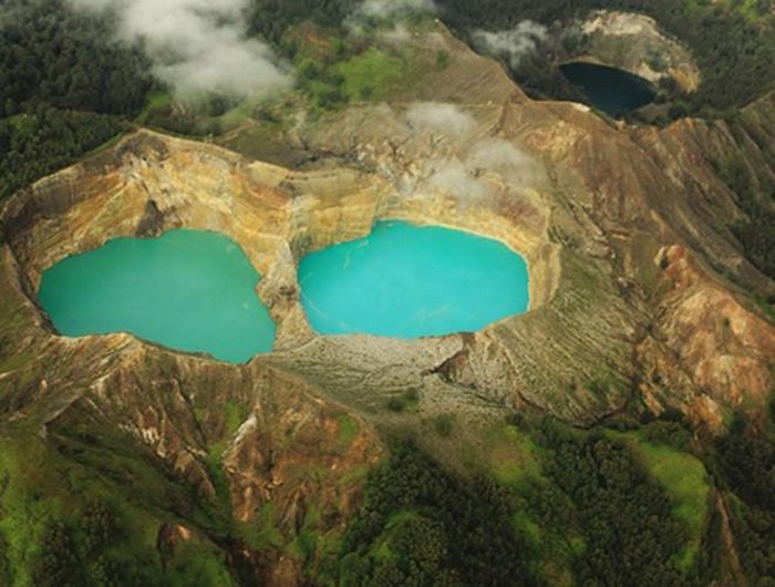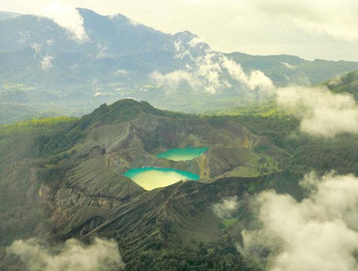 Còn tại vườn quốc gia đảo Flores, Indonesia, người ta cũng không khỏi ngạc nhiên bởi sự "biến hóa" kỳ diệu của ba hồ nước trên đỉnh ngọn núi lửa Kelimutu