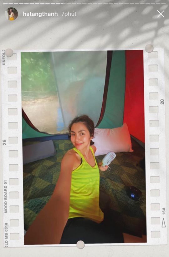 Đặc biệt, bức ảnh Tăng Thanh Hà để mặt mộc, selfie trong lều đã gây chú ý nhất. Dù không trang điểm, lại còn lấm tấm mồ hôi sau khi lội suối, vào hang nhưng gương mặt của "ngọc nữ" vẫn xinh đẹp không tỳ vết.