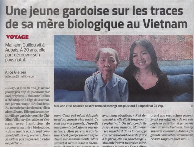 Xúc động thiếu nữ Pháp gốc Việt kiên trì tìm mẹ. Hơn một năm trôi qua kể từ ngày Mai-anh Guillou đăng tin nhờ mạng xã hội giúp tìm kiếm mẹ ruột - người đã bỏ đi sau khi sinh cô ở Bệnh viện Từ Dũ (TP.HCM) năm 1999.