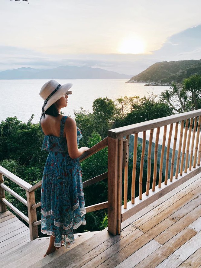 Mới đây Hoa hậu Ngọc Hân có chuyến nghỉ dưỡng tại một khu resort nổi tiếng ở Nha Trang. Người đẹp mặc váy hoạ tiết hoa quyến rũ ngồi trên du thuyền ngắm cảnh biển.