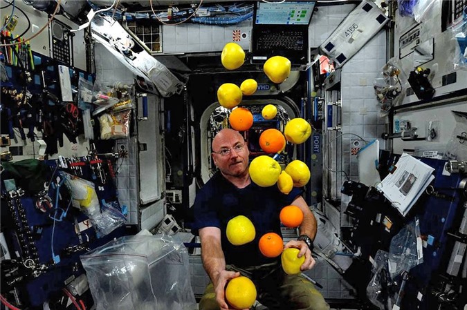 Trong môi trường không trọng lực, ông Kelly thể hiện tài năng tung hứng bậc thầy của mình.