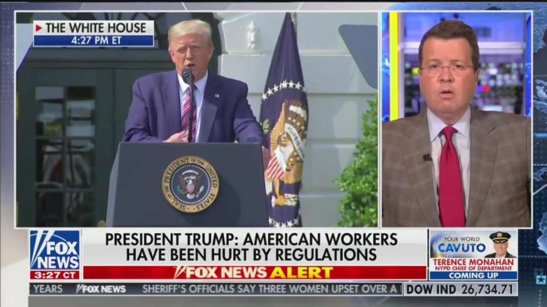 Trong khi bài phát biểu được truyền hình trực tiếp trên Fox News, Cavuto đã cắt ngang để kiểm tra sự thật cho khán giả của ông. “Tôi muốn làm rõ một số điều ông ấy nói, không có tổng thống nào trong lịch sử lại cắt giảm quy định nhiều như ông ta đã làm. Điều này là sự thật,” Cavuto lưu ý. “Tôi nghĩ, ông Trump có thể nói sai về những quy định được đưa vào dưới thời chính phủ Barack Obama.”