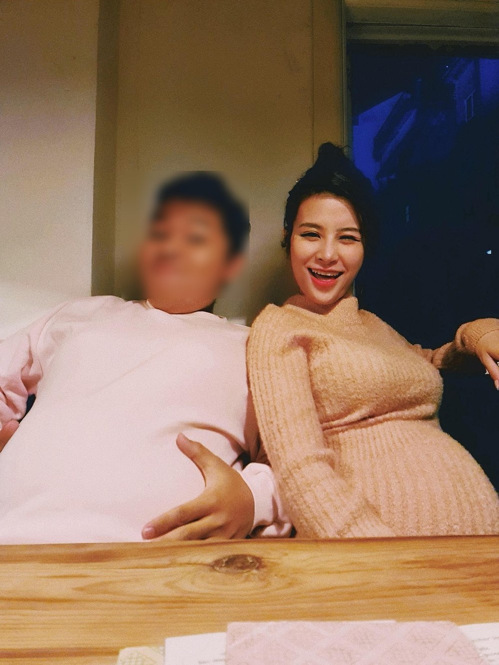 Trong bức ảnh, Đông Nhi tăng cân thấy rõ, bụng đã vượt mặt, đặc biệt niềm hạnh phúc vẫn thể hiện rất rõ trên gương mặt của nữ ca sĩ.