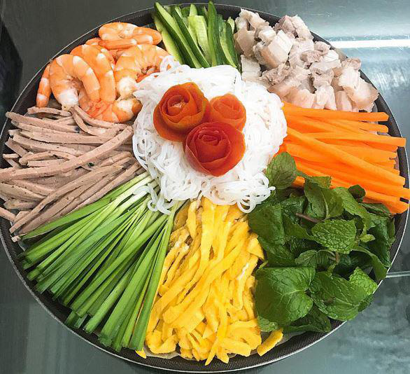 Người miền Bắc ăn gỏi cuốn tôm thịt thường có thêm giò, trứng rán và dưa chuột