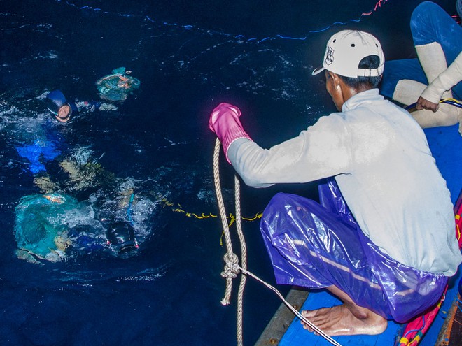Cảnh ngư dân lặn đêm ở Hoàng Sa