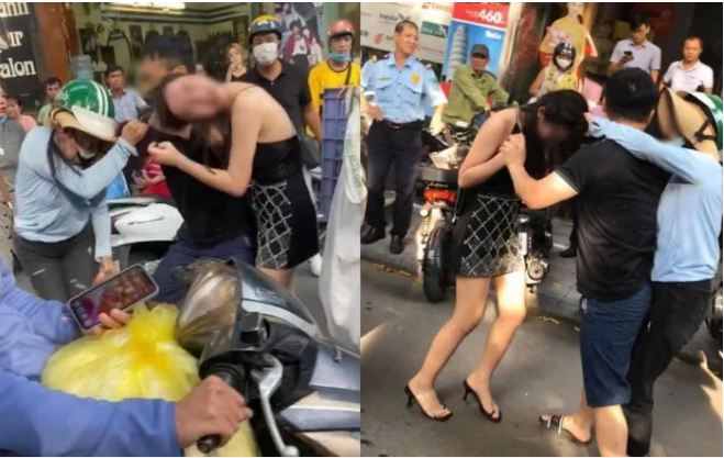 Cô nàng "tiểu tam" trong bộ váy sexy bị chính thất đánh không thể phản kháng, khóc lóc và la hét giữa đường.
