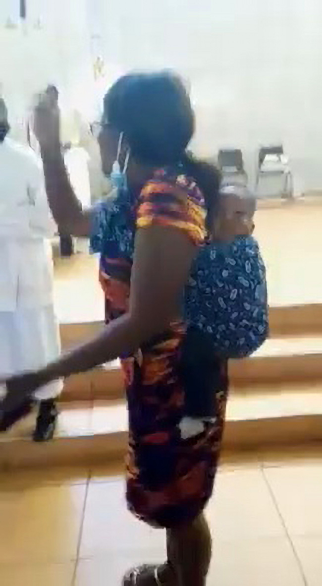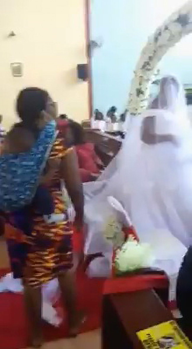 Được biết, sự việc xảy ra tại nhà thờ St Therese ở Lusaka, Zambia. Khi cô dâu và chú rể đang đứng trước vị chủ hôn để chuẩn bị đọc lời thề nguyền trăm năm thì một người phụ nữ dẫn theo 3 đứa trẻ, trong đó có một bé còn rất nhỏ được mẹ địu trên lưng, bất ngờ xuất hiện.