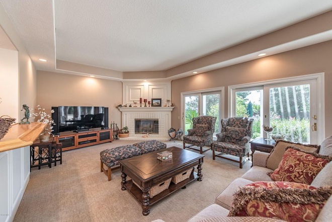 Phòng khách sáng sủa với những nội thất mang phong cách cổ điển. Căn phòng được tích hợp với một quầy bar thu nhỏ.