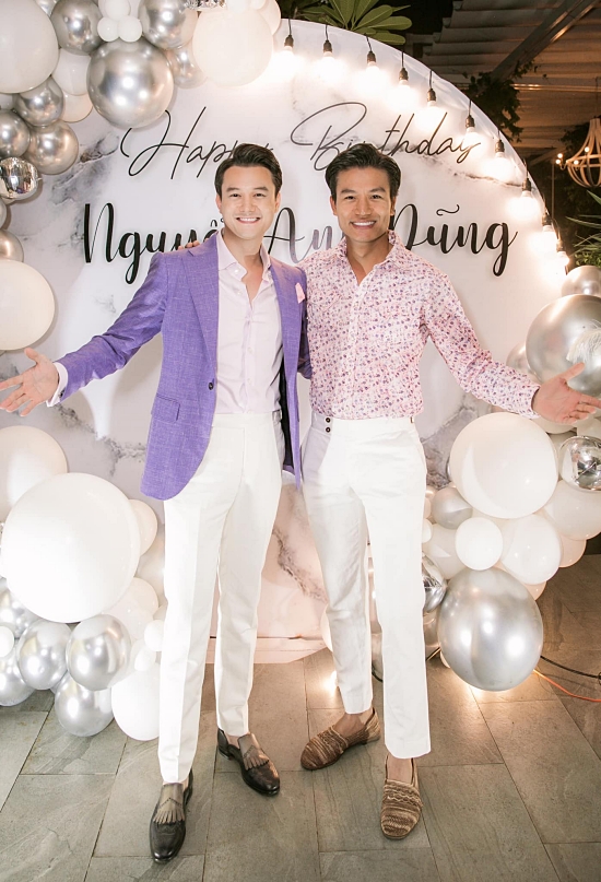 Siêu mẫu Đức Hải chọn vest hồng đúng dresscode của chủ nhân buổi tiệc.