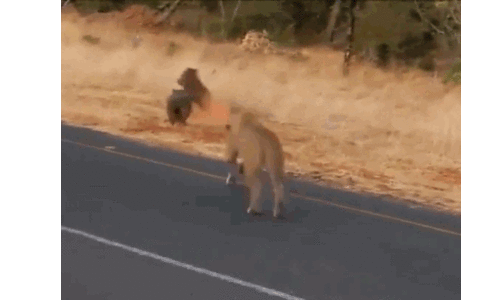 Đoạn clip được một du khách ghi lại trên con đường băng qua vườn quốc gia ở Kenya. Hình ảnh ghi lại được cho thấy, cặp lợn rừng đang đứng "tâm tình" với nhau thì bất ngờ một con sư tử cái âm thầm tiến tới.