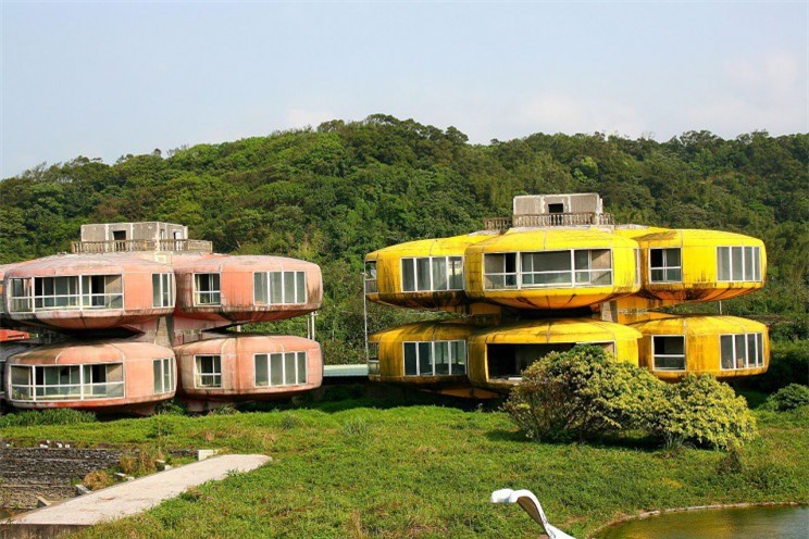 Thành phố Sanzhi Pod, Đài Loan sở hữu những ngôi nhà như một khu nghỉ dưỡng bên bờ biển. Dự án bị bỏ dở vào năm 1980 sau khi gặp khó khăn về tài chính và có một số vụ tự tử của công nhân xây dựng. Người dân địa phương cho rằng địa điểm này bị lời nguyền của linh hồn của rồng sau khi công nhân phá hủy một bức tượng. Ở châu Á, rồng gắn liền với sự may mắn và quyền lực, vì vậy nhiều người dân địa phương cho rằng hành động này dẫn đến điều xui xẻo cho nơi đây. Ảnh: Idealistacom.