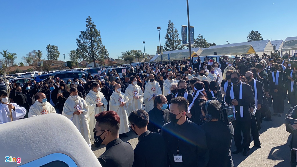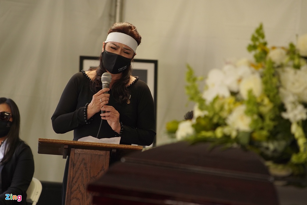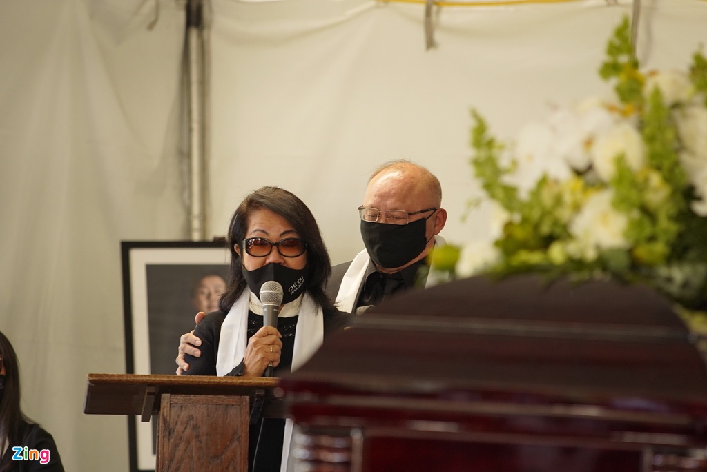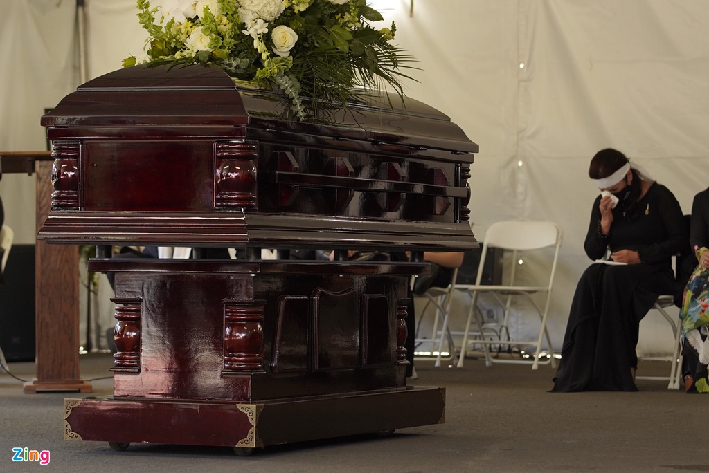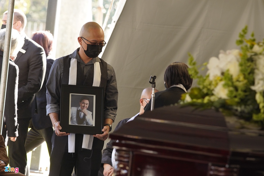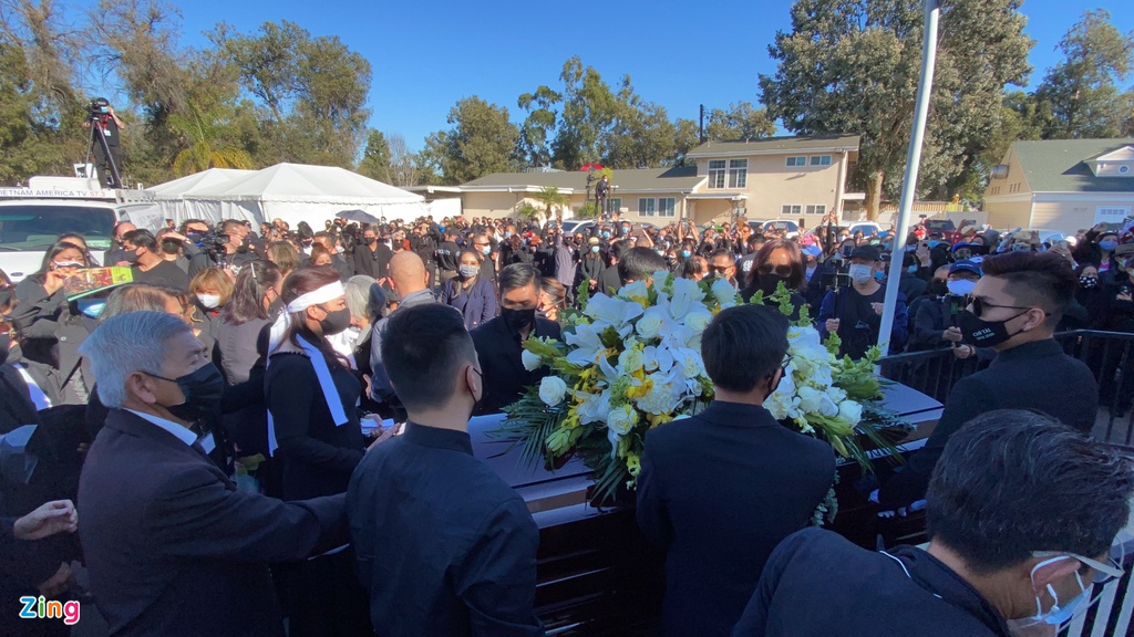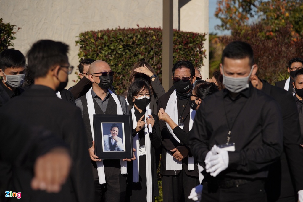 Sau khi thực hiện xong nghi thức của thánh lễ an táng, linh cữu của nghệ sĩ Chí Tài được di chuyển đến nghĩa trang Peek Family. Anh trai Chí Tài cầm di ảnh dẫn đầu đoàn đưa tang. Ca sĩ Phương Loan và người thân trong gia đình đứng hai bên linh cữu.