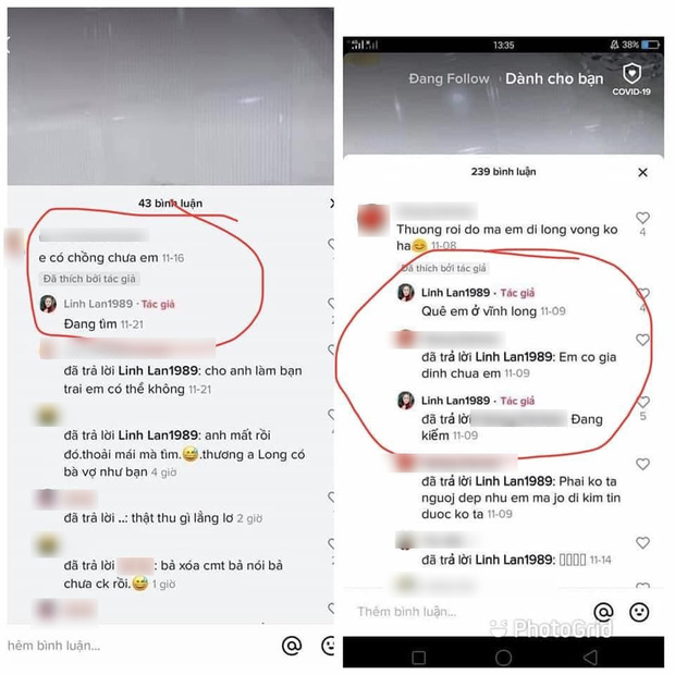 Cụ thể, khi trả lời bình luận của một số tài khoản trên TikTok vào ngày 26/10 và 21/11, Linh Lan đều khẳng định mình chưa có chồng và đang đi kiếm người đem lại hạnh phúc, sự an toàn. Điều này khiến netizen cảm thấy khó hiểu vì trên thực tế thời điểm đó cô và Vân Quang Long đã kết hôn, có với nhau một bé gái. Tuy nhiên, một vài người lại tỏ ý kiến bênh vực, cho rằng đây chỉ là những câu nói bông đùa của Linh Lan với bạn bè trên MXH chứ không có ngụ ý gì. Tìm lại tài khoản TikTok, 2 bài đăng và loạt bình luận này đã bị xoá.
