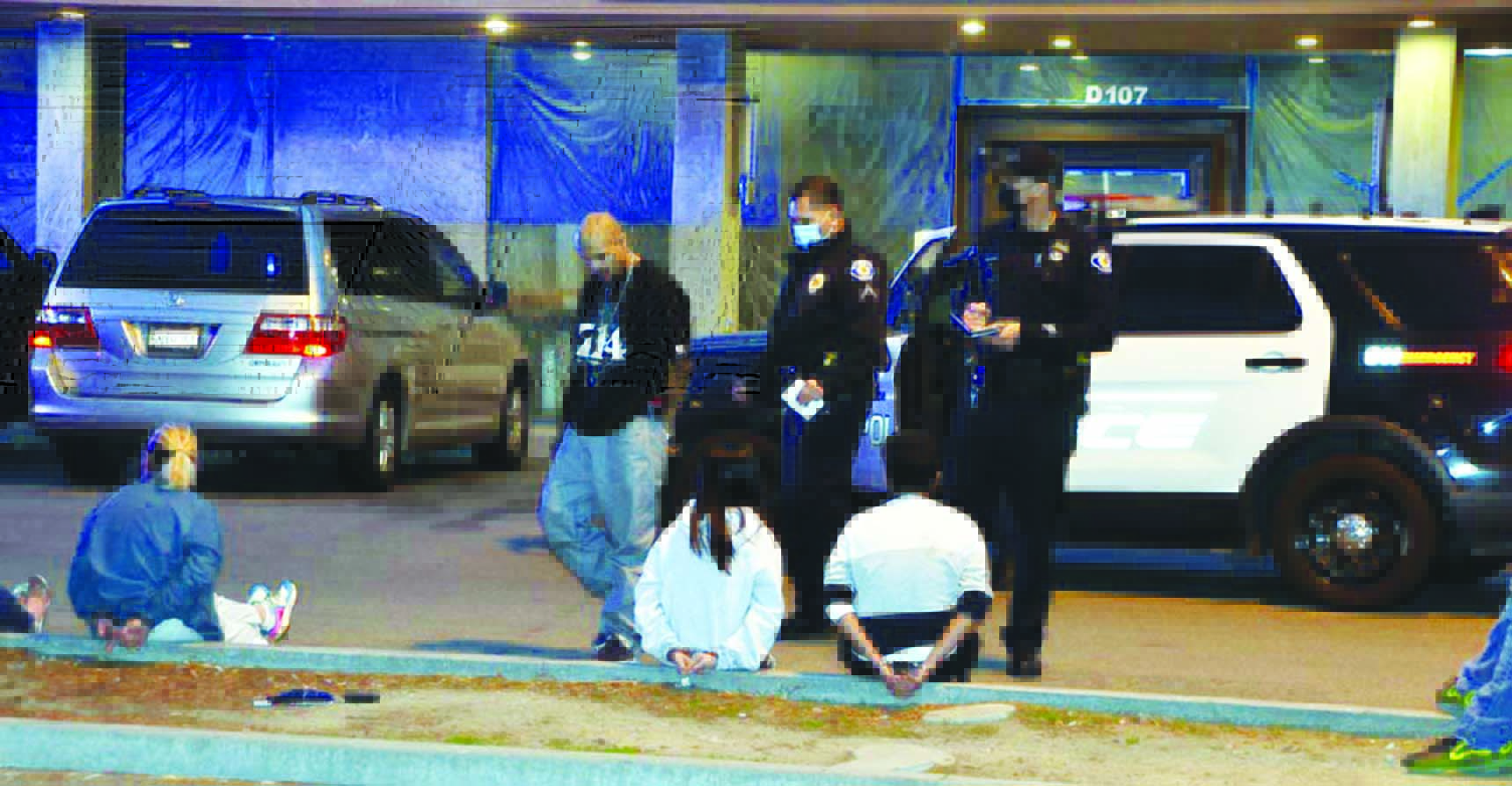 Sau một hồi kêu gọi bằng loa không kết quả, cảnh sát phải xông vào bắt từng người một còng tay đưa ra ngồi phía trước tiệm để lấy lời khai. Chúng tôi có mặt tại chỗ và thấy có sáu người cả nam và nữ, vừa người Việt và người ngoại quốc bị tạm giữ.