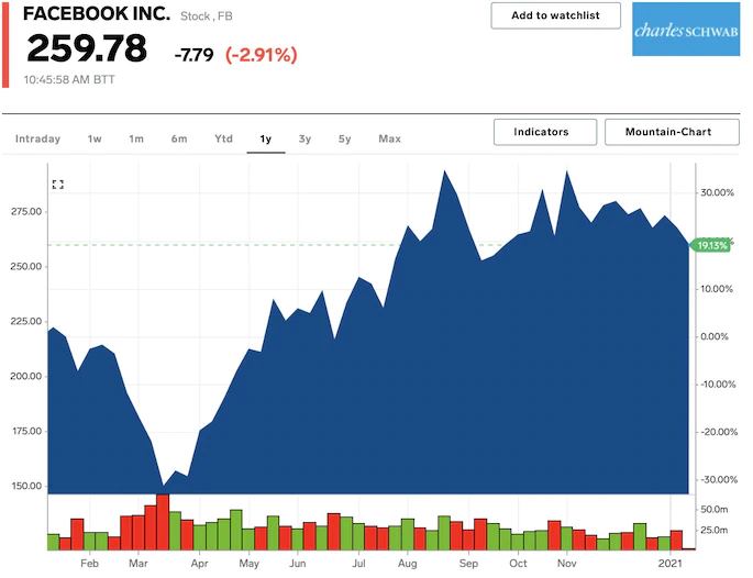Mức trượt này chứng kiến ​​33,6 tỷ USD bị xóa khỏi vốn hóa thị trường của Facebook ở mức thấp nhất trong ngày. Cổ phiếu kể từ đó đã giảm một số lỗ và hiện giao dịch thấp hơn khoảng 2,6%.