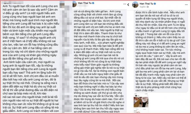 Bên cạnh những lời cảm kích, Hàn Thái Tú bị cư dân mạng đặt ra câu hỏi tò mò không biết vì sao lại cảm ơn Linh Lan. Lời bình luận được tài khoản này viết khá dài: "Anh Tú người bạn tốt của anh Long cho em hỏi anh cảm ơn Lan là sao vậy anh? Cảm ơn vì điều gì vậy anh? Là một người hiểu anh Long cũng như bao người bạn bè anh em khác mà trong suốt quá trình mọi người lên tiếng cho anh Long để hai bác không bị cư dân mạng hiểu lầm thì lúc đó anh im lặng nay anh lại xuất hiện và bình luận một câu khiến mọi người bênh vực lên tiếng cho gia đình anh Long đều thất vọng. Vì sao? Vì những người anh chị em ở Việt Nam và ở Mỹ đều không nói sai cho Lan, việc Lan xin lỗi hay không cũng đâu cần sự cảm ơn. Bởi vì hai tiếng cảm ơn trong lúc này nó chỉ dành cho những người anh chị em của anh Long và khán giả những ngày qua đã lên tiếng cho gia đình anh ấy" .
