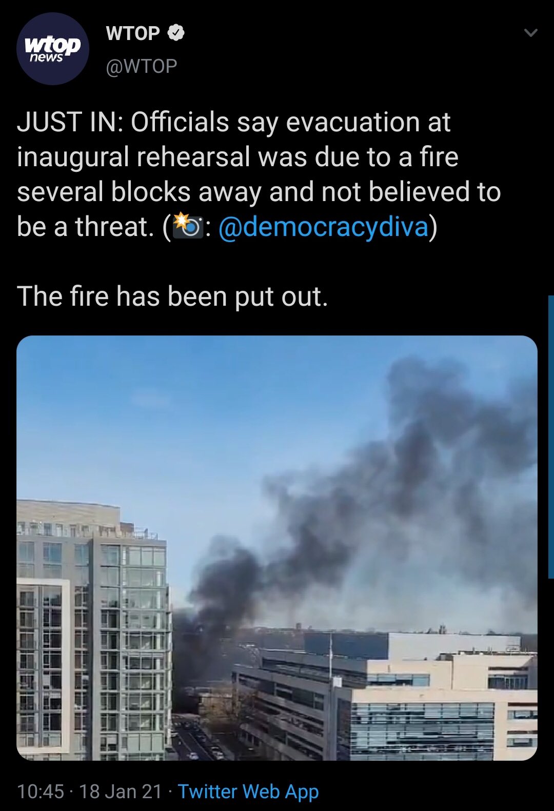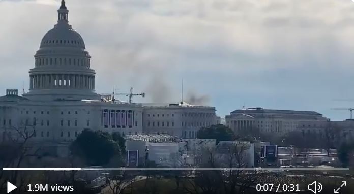 Sáng ngày 18/1/2021, lũ đảng cướp tập tành nhậm chức trên khán đài, khoảng thời gian đó đă có khói đen bốc lên, làm mọi người phải giải tán t́m hầm trú ẩn