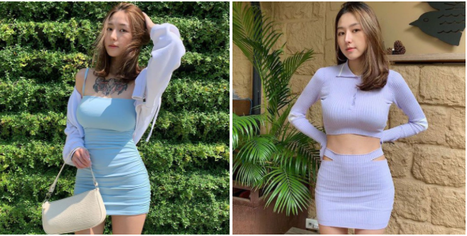 Người đẹp Đài Loan yêu thích trang phục bó sát hay cắt xẻ táo bạo, khoe khéo đường cong quyến rũ. Tuy nhiên khi ra ngoài, cô thường diện những bộ váy áo che kín hình các xăm lớn trên ngực và cánh tay.