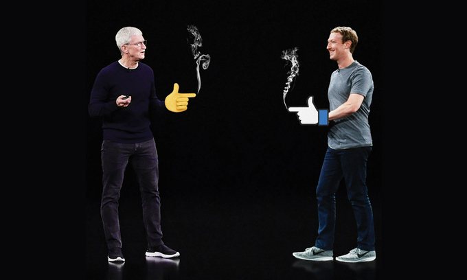 Facebook và Apple đối đầu nhau. Ảnh: WSJ