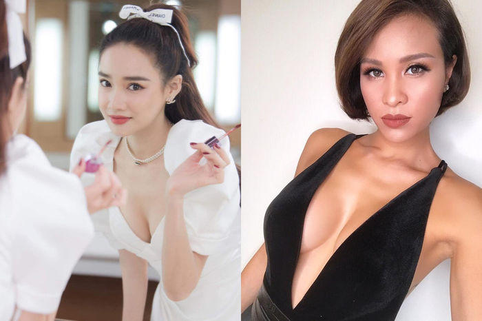 Bước vào tuổi 31, Nhã Phương vẫn trung thành với lối trang điểm ngọt ngào, tươi tắn, phong cách ăn mặc nữ tính "bánh bèo". Trong khi đó, MC Phương Mai thích trang điểm đậm, ăn mặc sexy nóng bỏng. Ảnh: FB Nabi Nhã Phương, FB Phương Mai