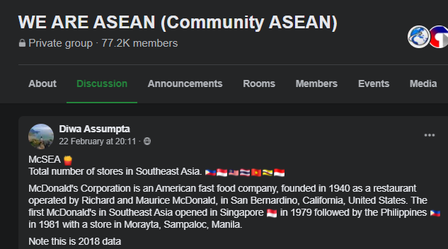 Gần đây, xung quanh câu chuyện sự phát triển của các thương hiệu đồ ăn nhanh tại Đông Nam Á được đưa ra, cộng đồng mạng Philippines đang muốn “gây chiến” và thể hiện một thái độ khá là “thượng đẳng” với cộng đồng mạng Indonesia và Việt Nam. Những cư dân mạng Philippines cho rằng Philippines đang phát triển, giàu có hơn Việt Nam, bằng chứng là thương hiệu thức ăn nhanh nổi tiếng McDonald’s đã mở hơn 600 cửa hàng tại Philippines trong khi đó, con số cửa hiệu của thương hiệu này tại Việt Nam chỉ là 22. Ngoài ra, những người Philippines dẫn thêm số liệu về số lượng các cửa hàng KFC, Jollibee tại Philippines vượt trội so với phía Việt Nam….