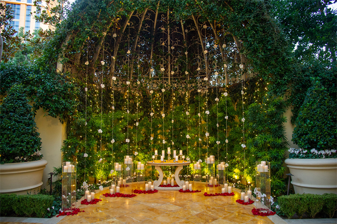 Không gian lung linh ở lễ đường với nến, hoa hồng và đèn điện. Vì dịch bệnh, cặp sao không mời đông người tới dự đám cưới.
