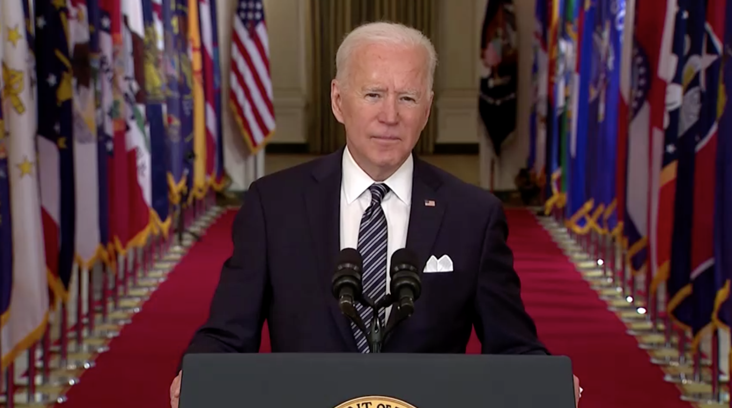 Bài phát biểu của Tổng thống diễn sau 8 giờ tối tại Toà Bạch Ốc và kéo dài khoảng 25 phút. Dù không đề cập trực tiếp đến ông Trump, Tổng thống Biden đã chỉ trích phản ứng của chính quyền trước đó khi im lặng và để virus lây lan đến mức mất kiểm soát trong nhiều tháng qua, dẫn đến con số 530,000 ca tử vong tại Hoa kỳ.