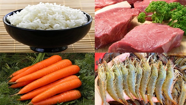 Tôm nõn cắt hạt lựu. Hành tây lột vỏ ngoài cắt hạt lựu. Cà rốt gọt vỏ rồi cũng cắt hạt lựu.