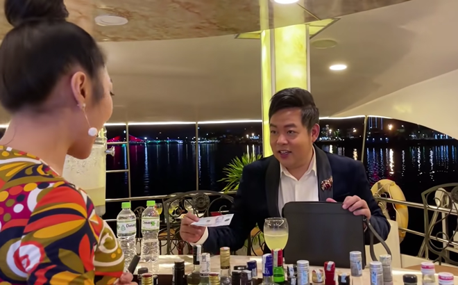 Sau khi uống xong, Quang Lê lấy ví tiền ra, định rút tiền đưa cho Hà Thanh Xuân và hỏi: "Em lấy anh bao tiền để anh còn típ cho em nữa!".