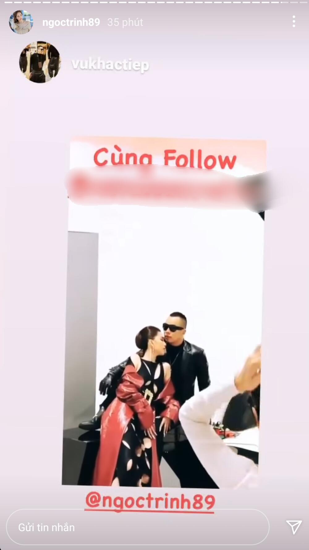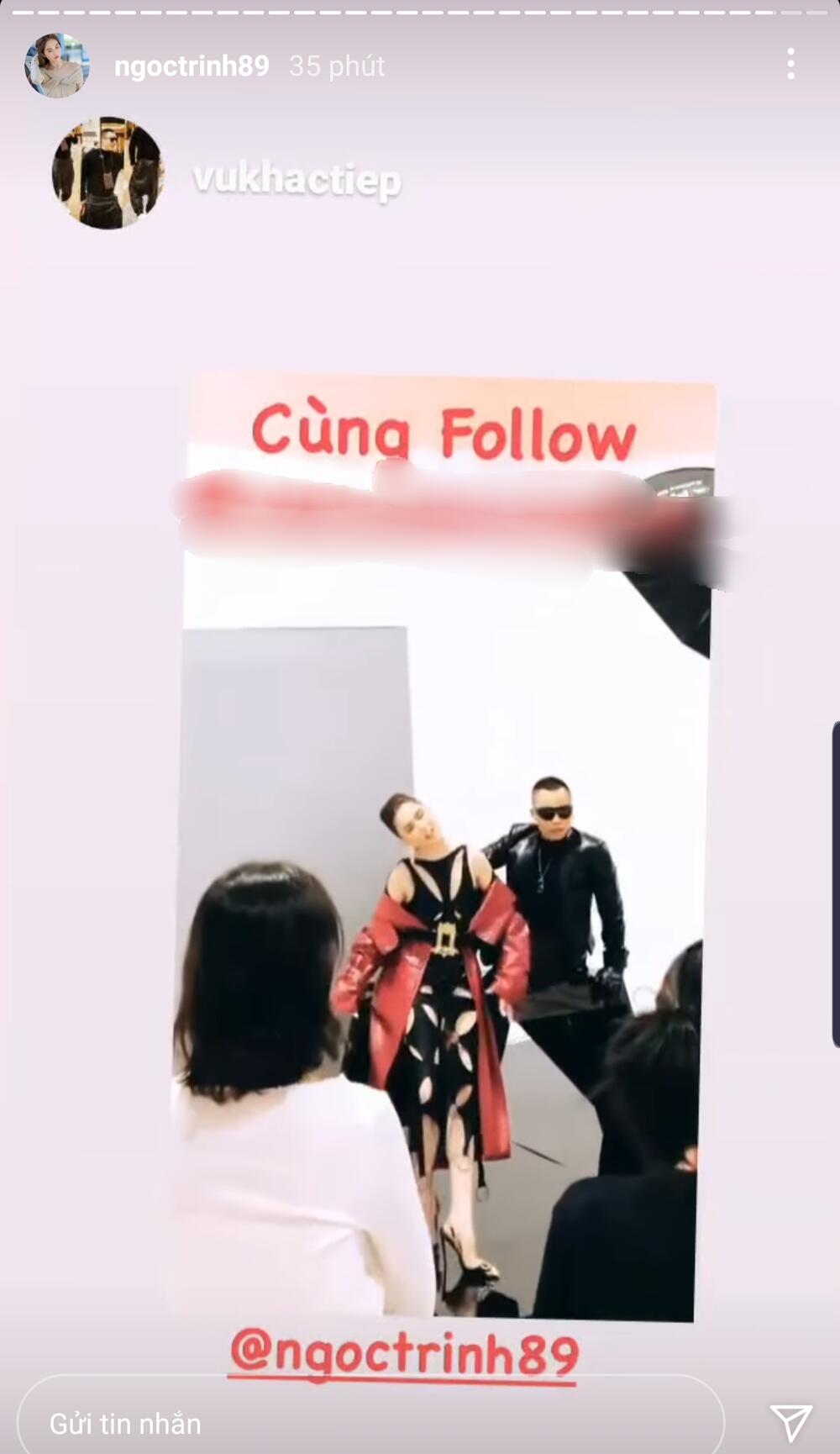Trên story trang cá nhân của cô thời gian này chỉ tập trung đăng tải loạt chia sẻ, động viên từ các fan, hiếm hoi là một đoạn clip nhỏ, chụp ảnh cùng Vũ Khắc Tiệp. Trong đó, Ngọc Trinh "đốt mắt" khán giả với thiết kế cắt xẻ, dường như không thể hở hơn được nữa.