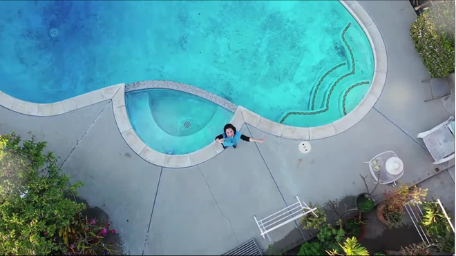 Khu vườn sau nhà Hồng Đào phải rộng gấp chục lần vườn trước, với nguyên một bể bơi uốn lượn. Cô nói: