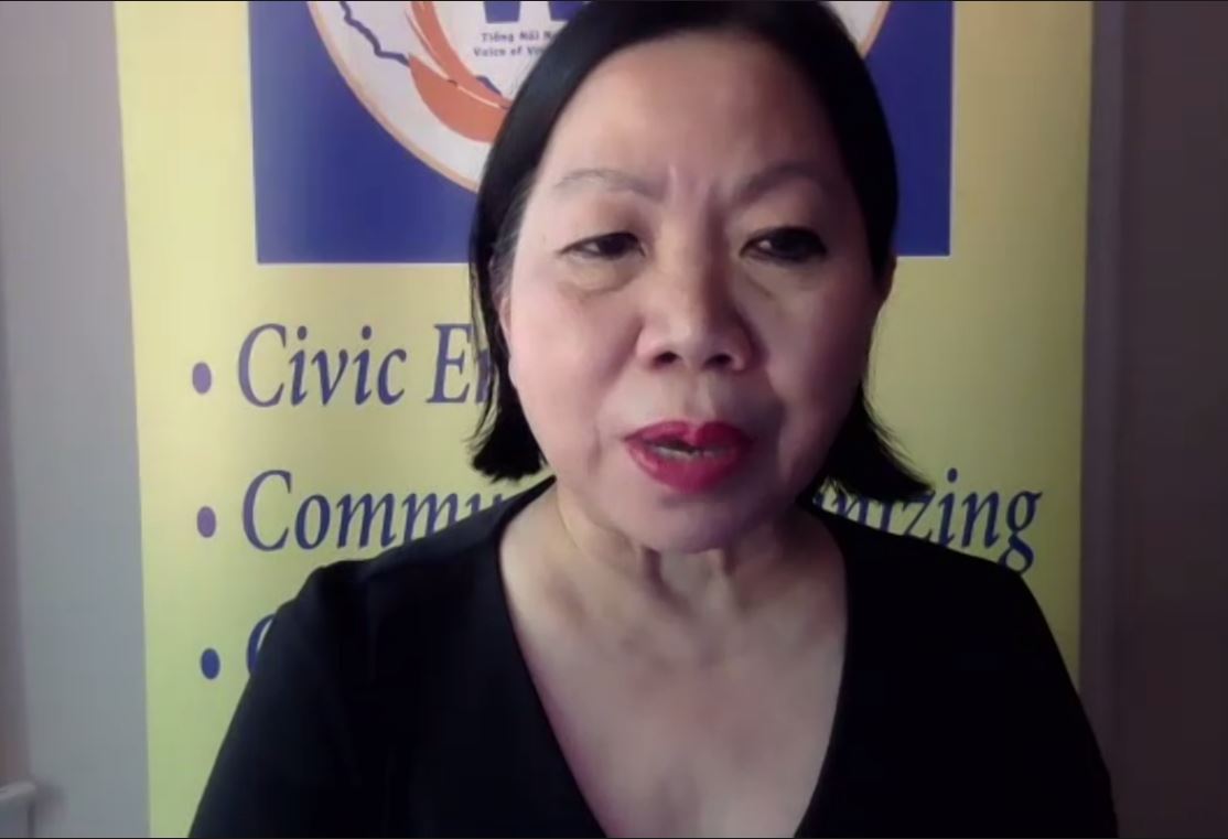 Bà Genie Giao Nguyễn, tổng giám đốc của Voice of Vietnamese Americans. (Hình: Chụp từ màn hình Zoom)