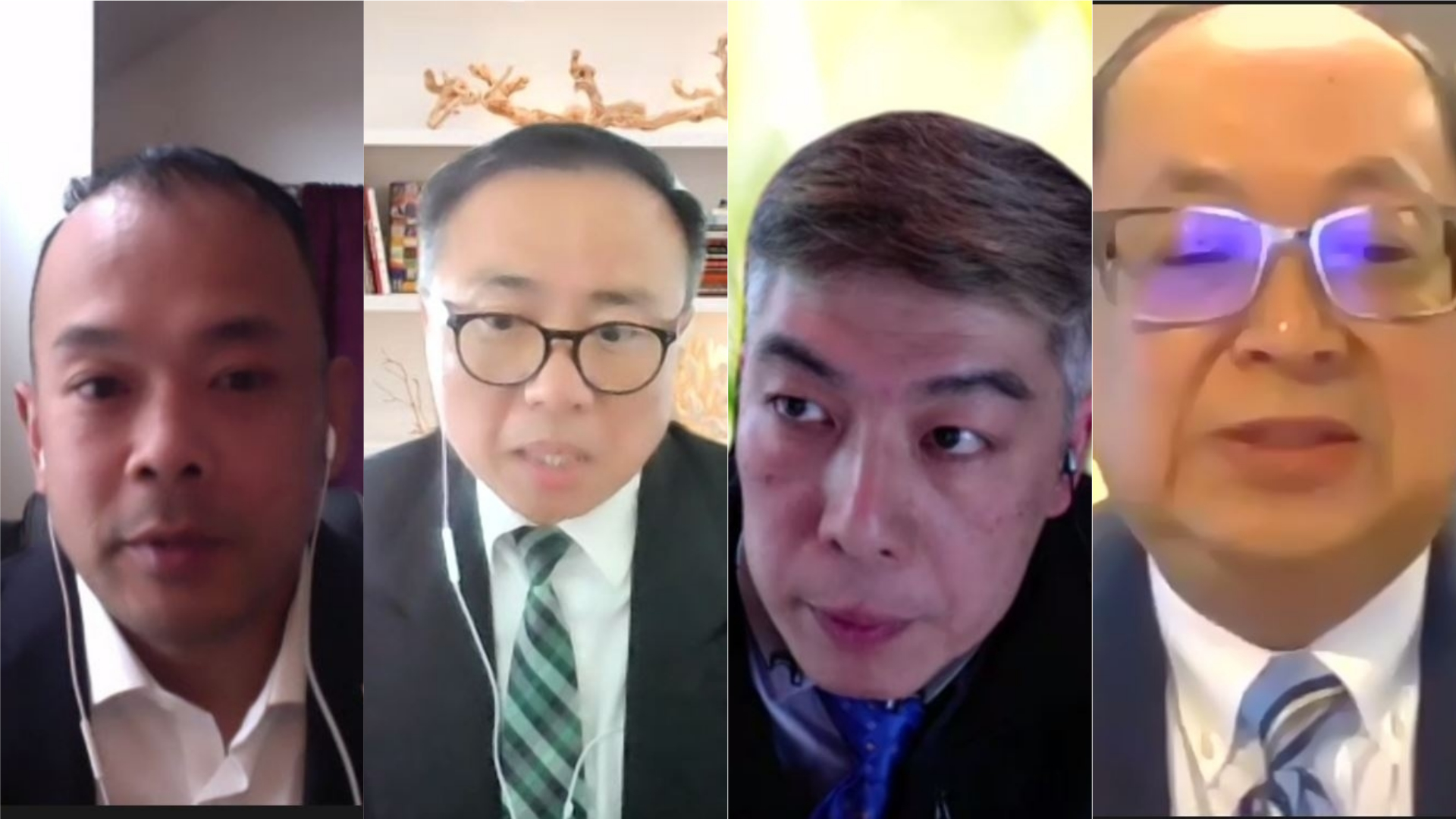 Từ trái, cựu Thượng Nghị Sĩ Dean Trần, Luật Sư Steven Điểu, ông Công Xuân Tùng, và ông Vinh Nguyễn. (Hình: Chụp từ màn hình Zoom)