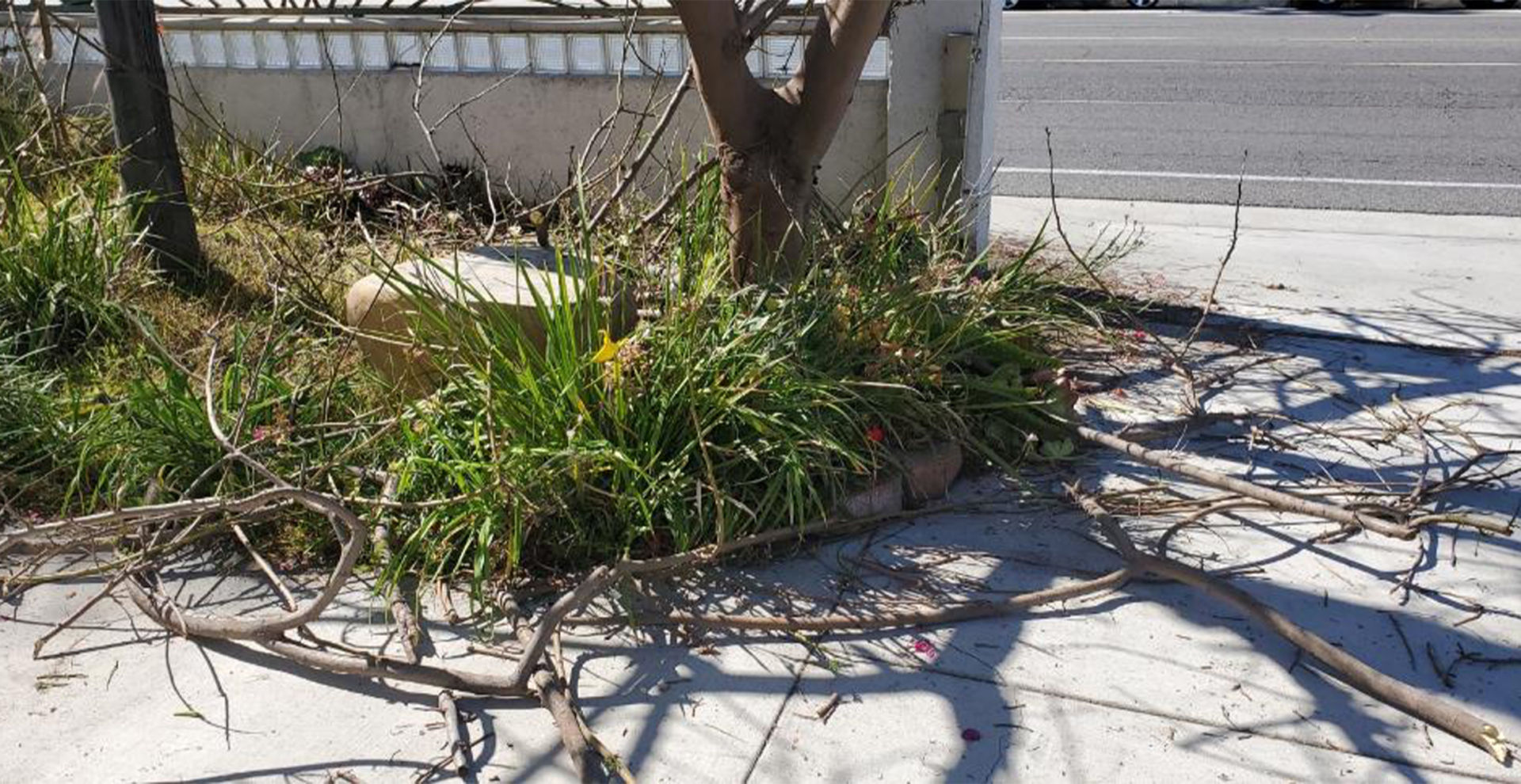 Những cành cây bị bẻ trước nhà Nghị Viên Phát Bùi. (Hình: Phát Bùi cung cấp)