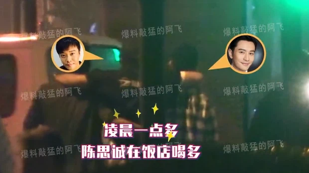 Vậy nhưng, chỉ sau đúng 1 tiếng tuyên bố đường ai nấy đi với mỹ nhân Cung Toả Tâm Ngọc, Trần Tư Thành đã bị truyền thông xứ Trung "vạch mặt". Loạt hình ảnh anh đi nhậu say xỉn với Huỳnh Hiểu Minh được tung ra, cả hai tỏ ra vui vẻ và trò chuyện không ngớt.