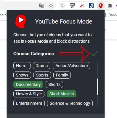Lúc này hiển thị các chủ đề video YouTube mà tiện ích hỗ trợ. Bạn nhấn chọn vào những chủ đề video nào mà mình muốn xem, muốn xuất hiện trên phần tìm kiếm video YouTube.