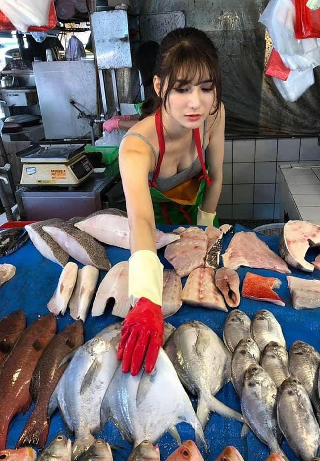 Theo Shanghaiist cho biết, lúc bị chụp trộm, hot girl này đang phụ việc bán hàng ở sạp cá của mẹ.
