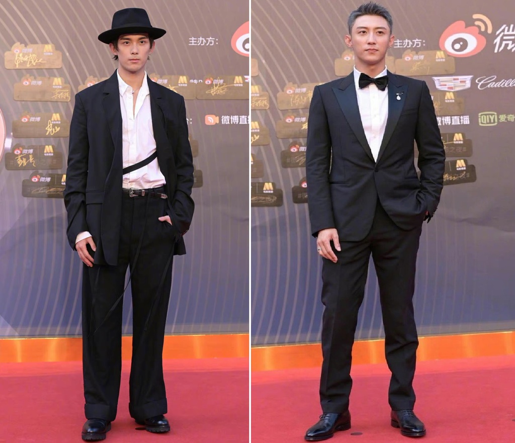 Ngô Lỗi (trái) bị chê phong cách kém điển trai trên thảm đỏ. Sắp tới, anh sẽ cùng Triệu Lộ Tư ghi hình tác phẩm Tinh hà xán lạn, may mắn quá thay - chuyển thể từ tiểu thuyết cùng tên của nhà văn Quan Tâm Tất Loạn. Hoàng Cảnh Du hiện có dự án Quân trang thân yêu, đóng cặp với Lý Thấm lên sóng. Tuy diễn, phim không nhận được phản hồi tích cực từ khán giả.
