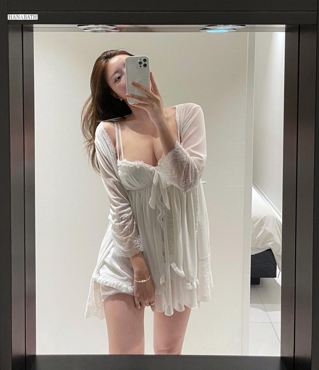 Không phải vô cớ khi đồ ngủ thường được may bằng chất liệu mỏng nhẹ như thế này. Bên cạnh sự thoải mái mang lại cho người mặc nó còn không kém phần gợi cảm để phái đẹp cảm thấy mình được nâng niu kể cả trong giấc ngủ. Vốn nổi tiếng với vẻ quyến rũ thương hiệu, không lấy làm ngạc nhiên khi đồ ngủ của Choi Somi cũng đặc biệt sexy.